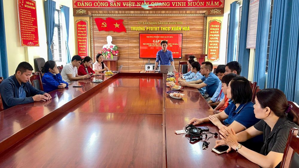 Thực hiện Quyết định số 101/QĐ-UBND Xã Xuân Hòa về việc thành lập Đoàn cán bộ, giáo viên, học sinh tham dự Kỳ thi học sinh giỏi cấp tỉnh THCS năm học 2025 - 2026, Trường PTDTBT THCS Xuân Hòa đã tổ chức buổi gặp mặt, động viên đội tuyển học sinh giỏi các môn văn hóa trước khi tham dự kỳ thi cấp tỉnh.